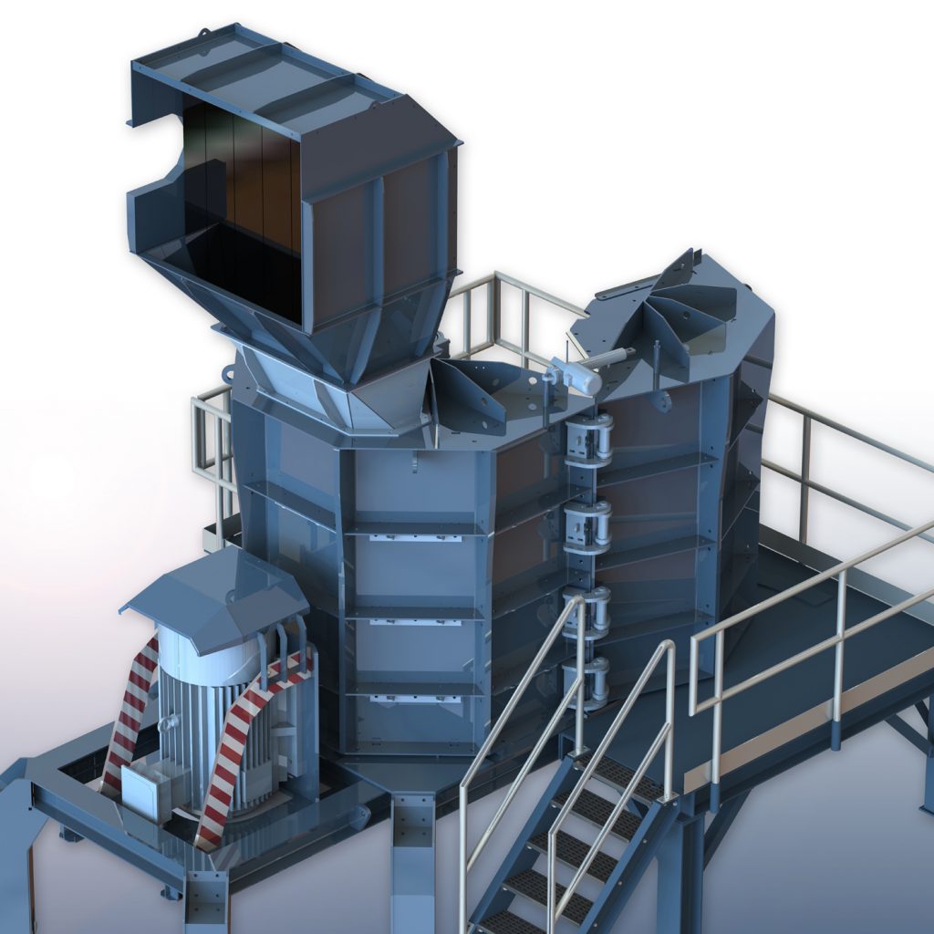 SICON präsentiert die Lösung, den EcoShred® Wiretec: eine vertikale Hammermühle, die reversierend betrieben werden kann. In einem einzigen Durchgang ermöglicht sie auf 5 Mahlebenen die folgenden Arbeitsschritte: